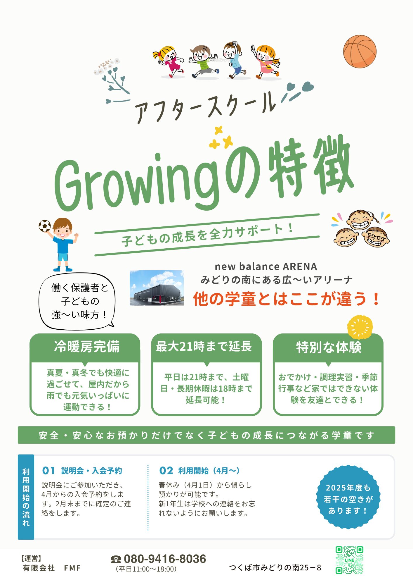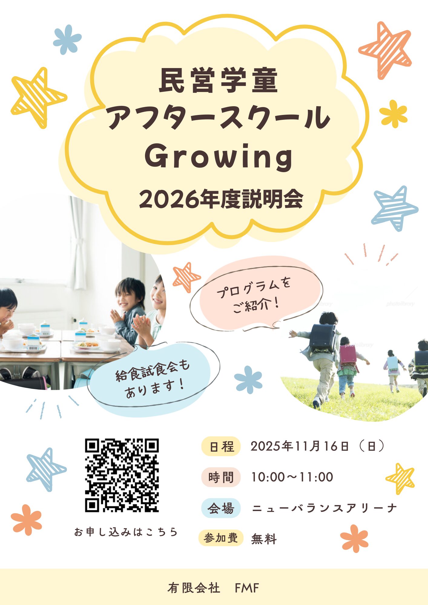 民営学童アフタースクールGrowingの2026年度募集を開始します。
